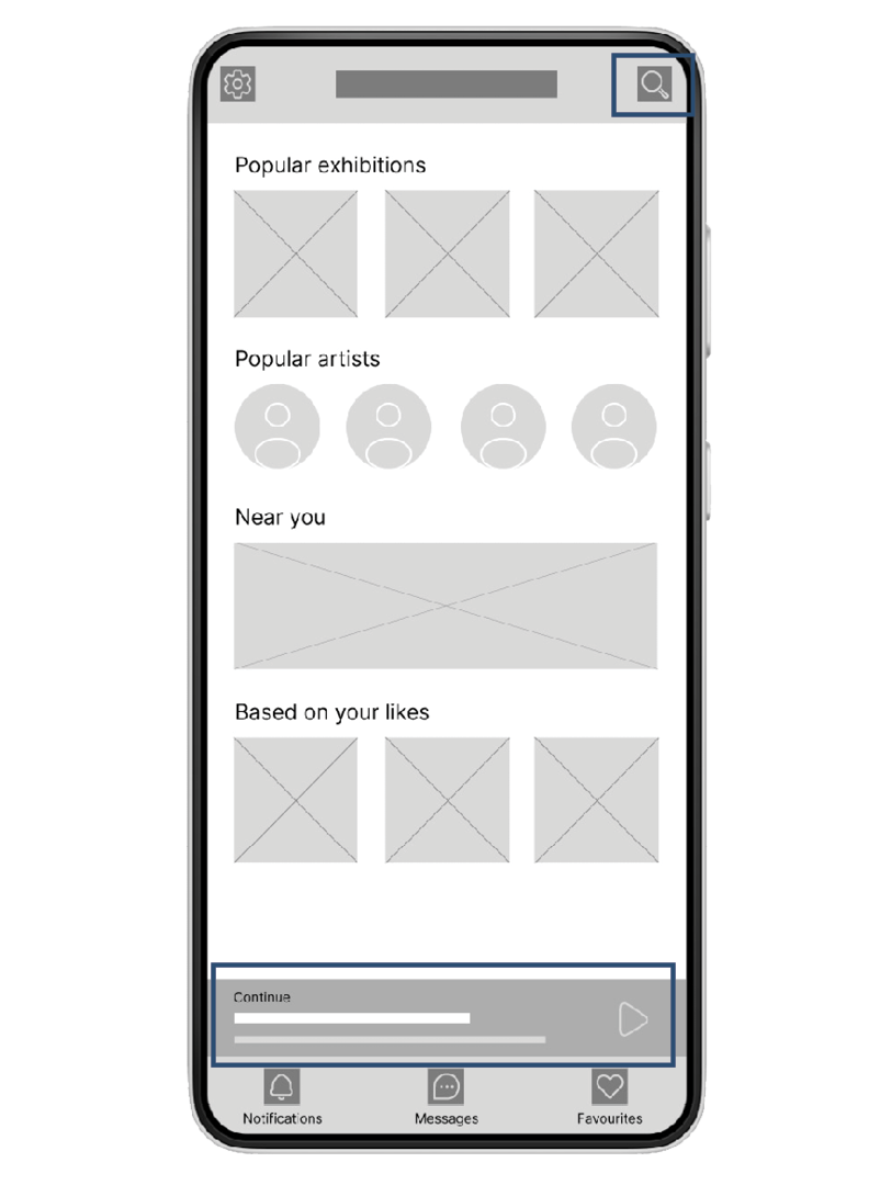 One of the primary user pain points found through user research was the lack of time to explore physical art galleries. Having the ability to pause and continue the tour on the user’s schedule was very important. I also wanted to make an easy and straightforward way to find the exhibition in mind: