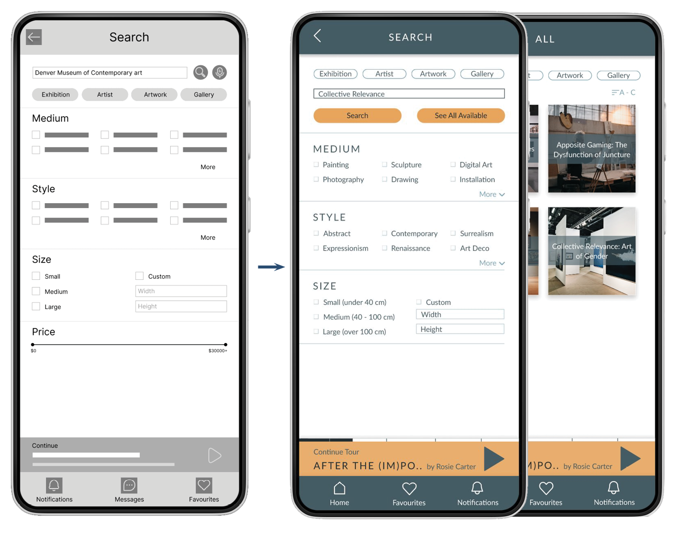Another pain point expressed in user research was the need for more directions and detailed descriptions in art galleries. It was important to have structured tours for users not to feel overwhelmed and lost: