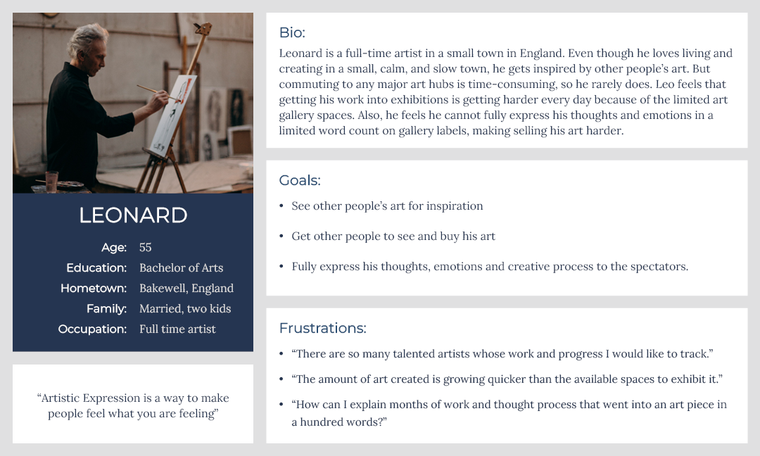 I conducted informal interviews with artists and art lovers for this project. From interviews and empathy maps, user problems were identified: